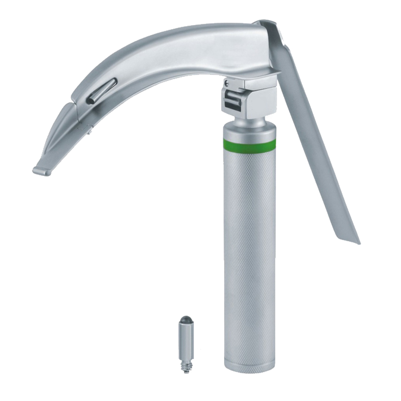 The Flex tip is a Macintosh laryngoscope blade with a tip which is adjustable through 70%. A lever controls the tip angle during incubation to lift the epiglottis giving a clear view of the vocal cords. Contact with upper row of teeth and unnecessary pressure on the tongue and soft tissue and avoided.